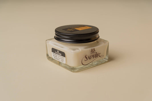 Saphir's world famous Renovateur (or Reno) is the jack of all trades. Saphir's Pommadier creme polish hydrates your shoes or boots while also imparting some beautiful colour. Their paste waxes allow you to polish the heels and toes of your shoes to a mirror finish.