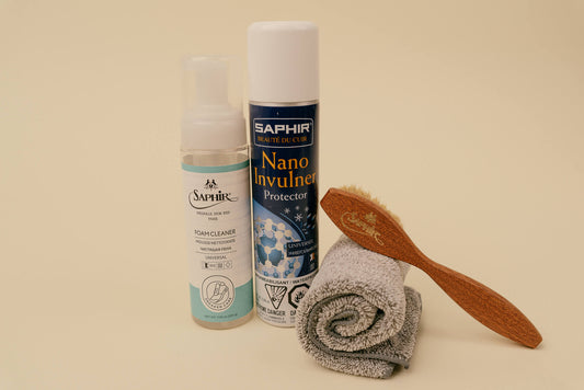 Saphir has you covered with some of the best sneaker care product you can find. The gentle Foam Cleanser is formulated to work on any textile, making it perfect for sneakers. There are also protectors, brushes, and more.