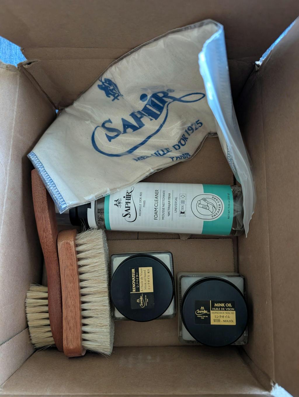 I did a lot of research before purchasing this set of leather care items from Brillare as a gift for someone. Saphir products are very highly regarded. I am happy that I chose this small Canadian company, Brillare, to supply the leather care products and the cedar shoe trees. They were very wonderful to work with and had excellent communication. They packaged the items carefully, individually wrapping each item in paper and then boxing them well. The package was quickly delivered to its destination one province over. I highly recommend them.