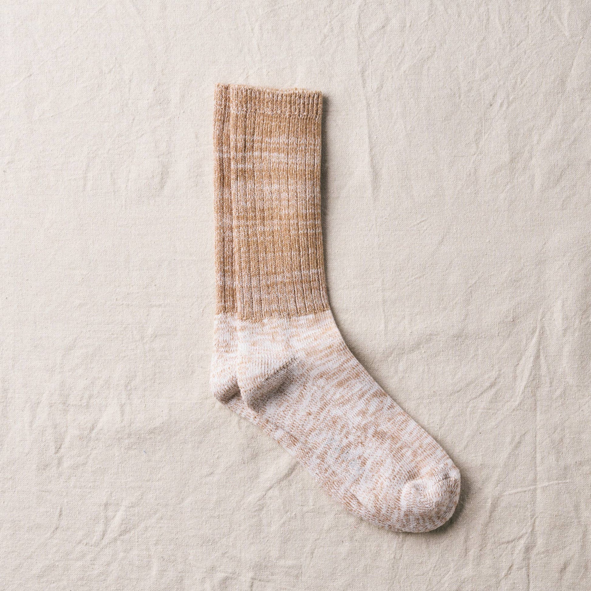 Inspired by military socks, these ribbed socks have pile soles and are perfect for daily use. The pile knitting on the sole and the supportive elastic at the arch of the foot makes them comfortable for daily wear, and with the longer length, they gently wrap up to your calves. Best for everyday strolls or workouts.